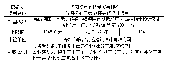 首期標準廠房2#樓裝修設計項目抽取結果公示